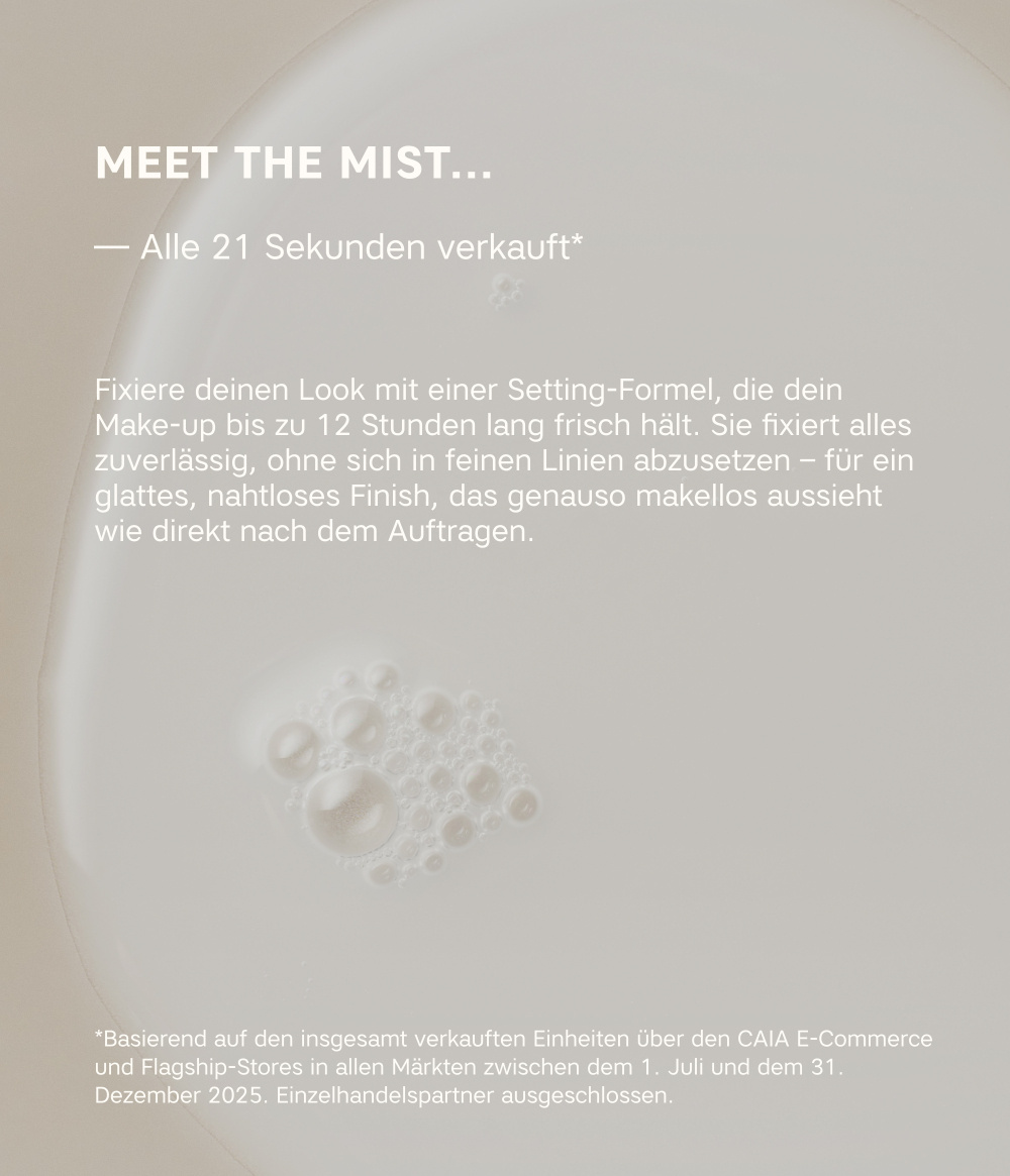Ein Mist beschreibt, wie sich das Produkt verteilt: ein sehr feiner, gleichmäßiger Nebel, der sich leicht auf die Haut legt. Unsere Setting Sprays haben einen ultrafeinen Sprühnebel, der die Formel gleichmäßig verteilt, ohne sichtbare Tröpfchen, und das Make-up fixiert, ohne es zu stören.