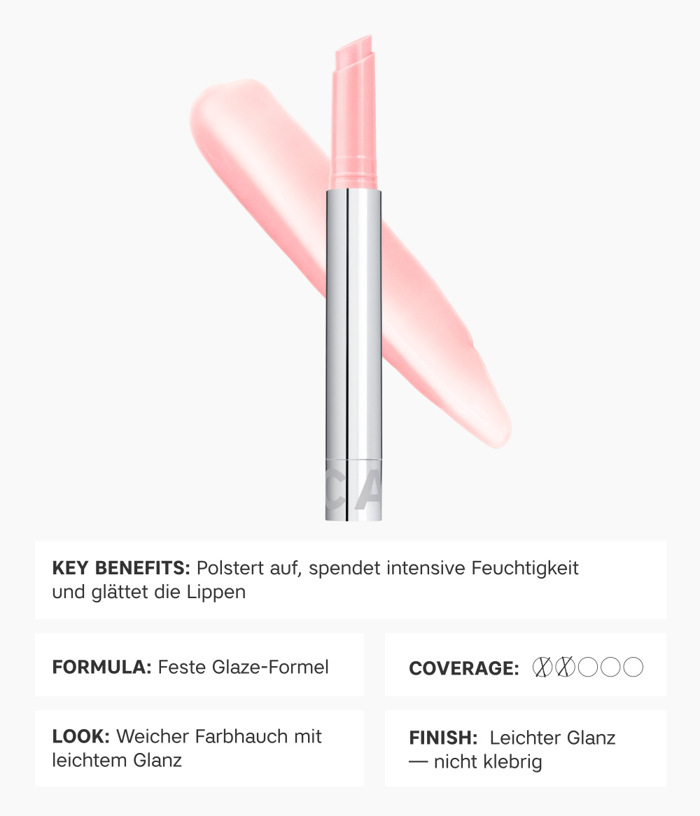Cushion Glaze ist eine getönte Lippenpflege, die Feuchtigkeit spendet, glättet und den Lippen einen prallen, weichen Effekt mit einem leichten, glasierten Finish verleiht. Sie kann auch als Lippenmaske verwendet werden, ohne sich dick anzufühlen.